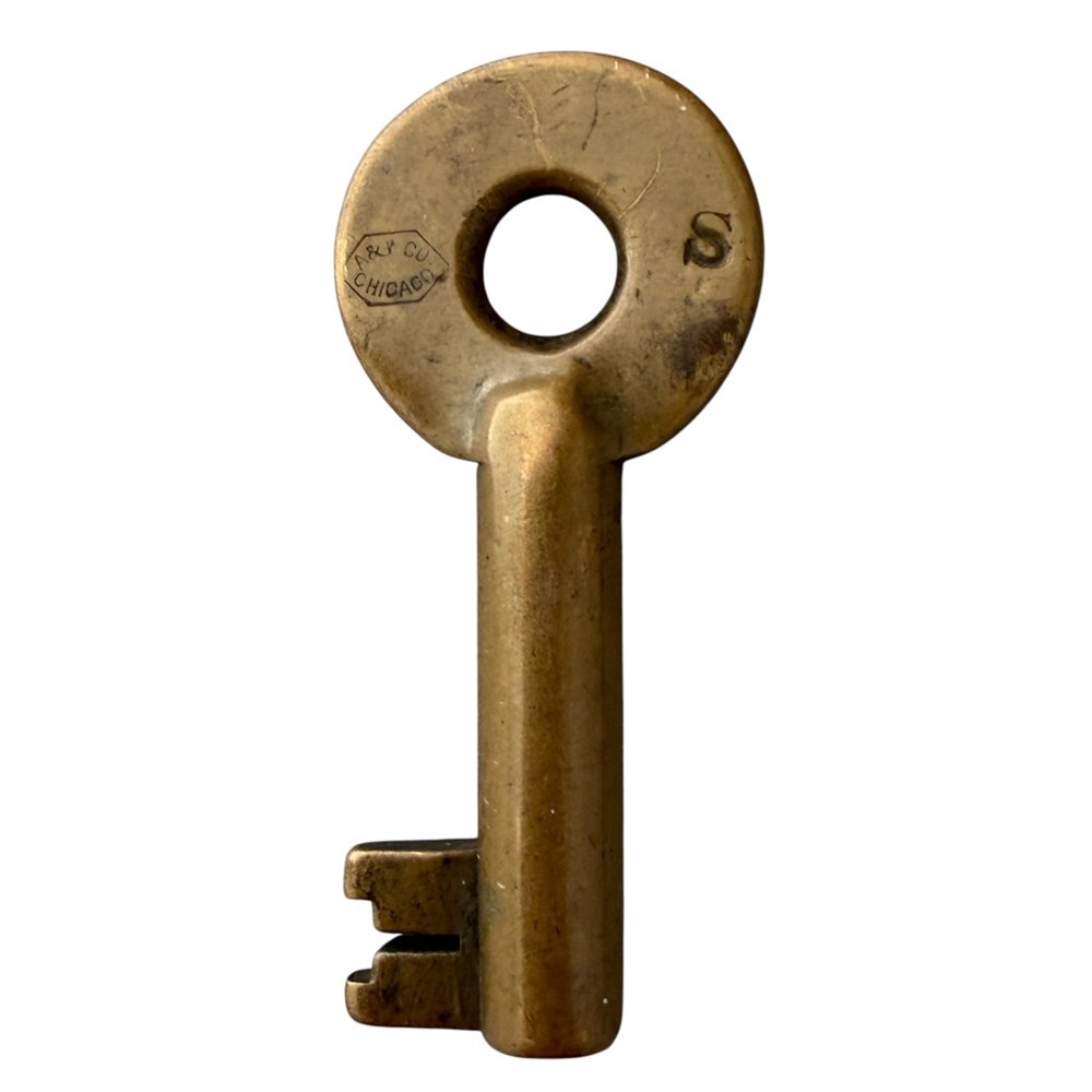 Chicago and Western Indiana Railroad.  Switch key. Hallmarked with the Adams and Westlake hexagon logo.