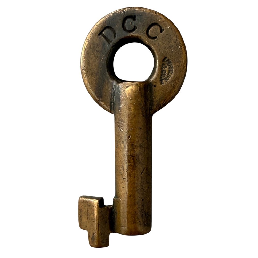 Chicago Milwaukee and St. Paul Railroad. Dining Car Cellar key. Marked DCC on rear. Hallmarked Loffelholz and Co.