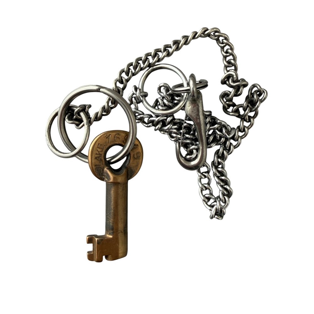 Denver and Rio Grande Western Railroad. Switch key. Hallmarked Adlake. Came from an employee who worked as a conductor in Salt Lake City. Still has his original chain attached.