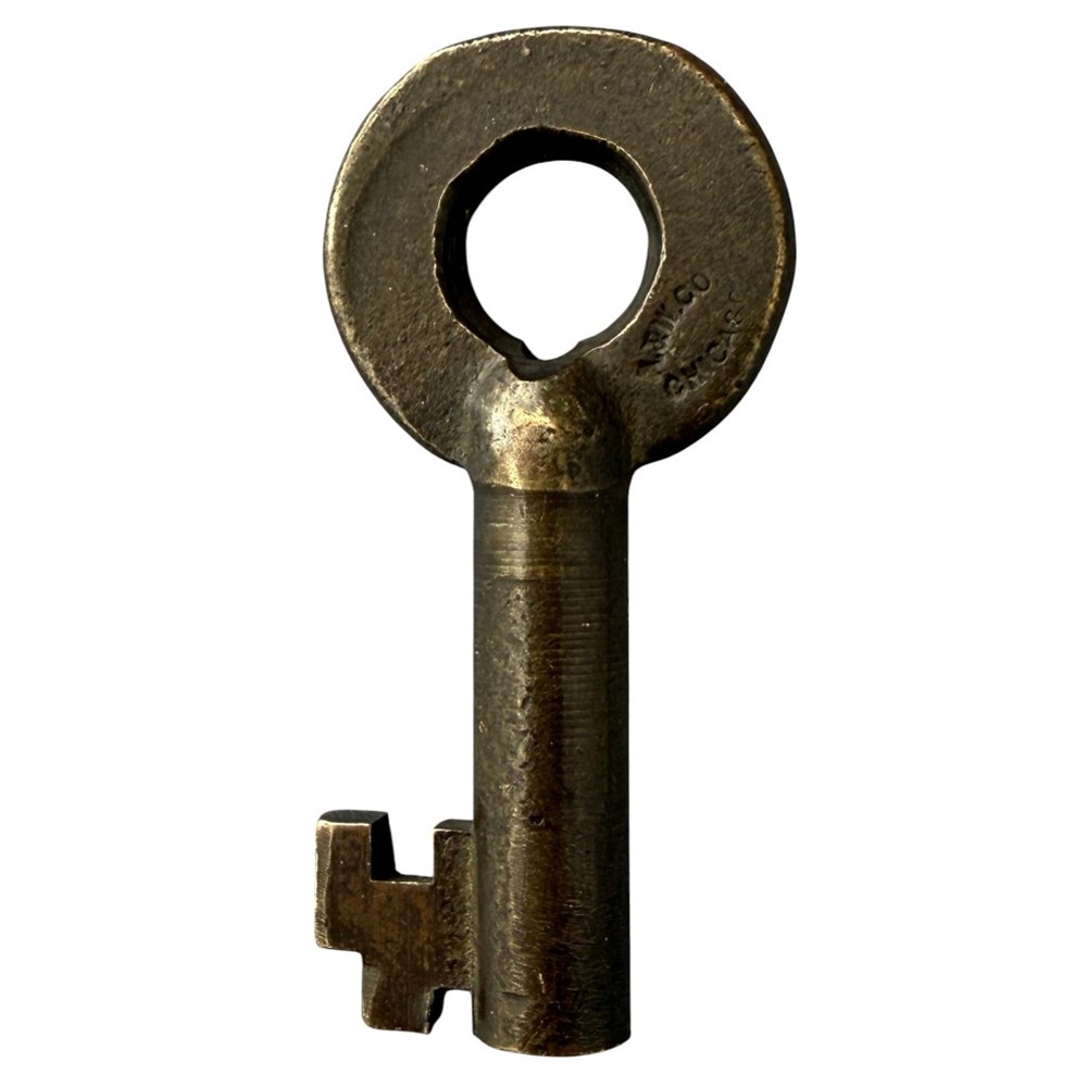 Kansas Oklahoma and Gulf Railway.  Hallmarked with the Adams and Westlake football logo.  Darker patina but a harder key to find.