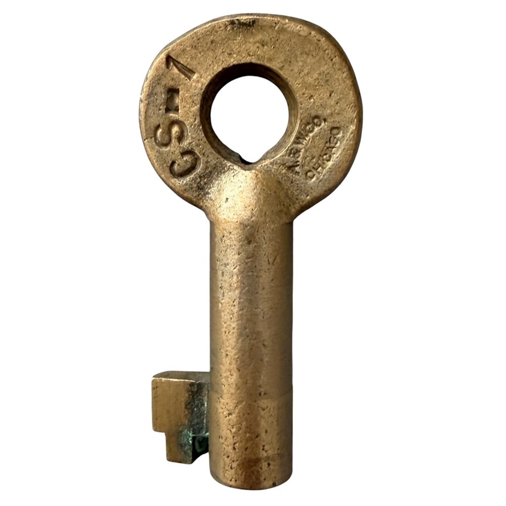 Oregon Washington Railroad and Navigation Co. Switch key marked CS-1. Hallmarked with the Adams and Westlake football logo.