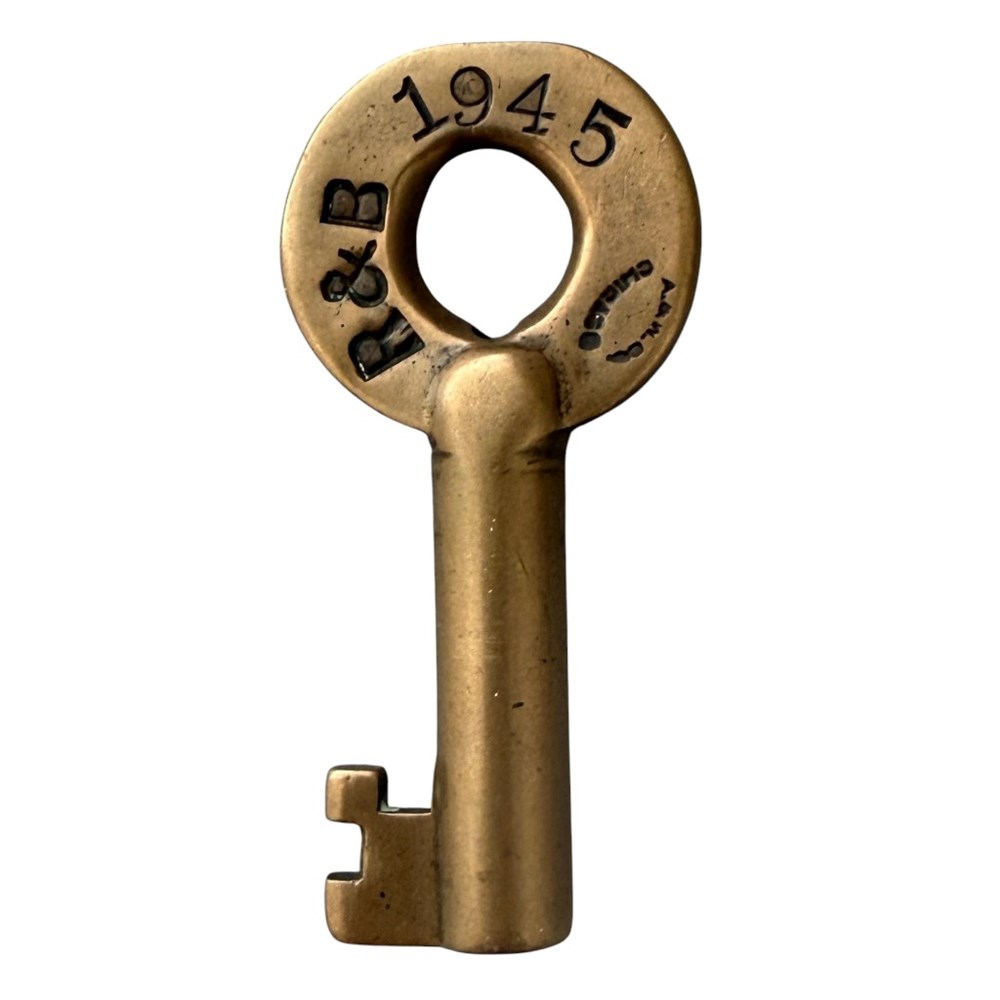 Union Pacific Railroad. Road and Bridge key. CS-21. Hallmarked with the Adams and Westlake football logo. Works the lock in Lot 2144 perfectly.