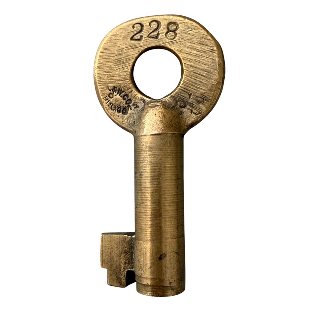 Union Pacific System. Switch key. Hallmarked with the Adams and Westlake football logo.