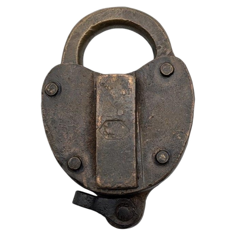 Union Pacific Railroad.  Tool Rack lock.  Hallmarked with the Adams and Westlake hexagon logo.  The lock is fully functional with spring in the dust cover.  The correct key is available in Lot 2125 and works the lock perfectly.