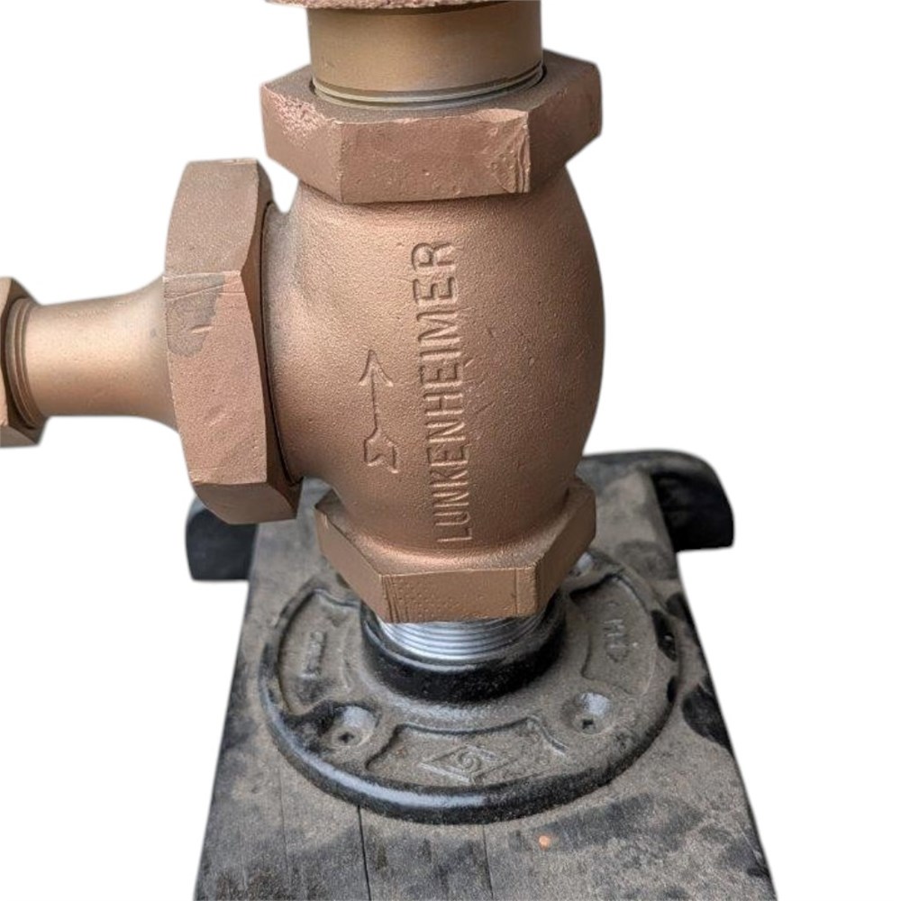 Mt. Emily Lumber Co. Railroad.  Steam locomotive whistle from Willamette, engine #4.  5-chime whistle manufactured by Lukenheimer.  Mt. Emily Lumber CO, operate out of La Grande, Oregon.  Whistle measures about 25" tall and 5-3/4 in diameter.  The engine was set aside to be saved, but unfortunately the scrappers did not receive the message and scrapped her.  Luckily the whistle was saved.  The whistle originally came from Gary Allan, who was a Southern Pacific Railroad photographer.